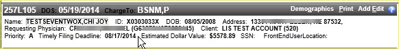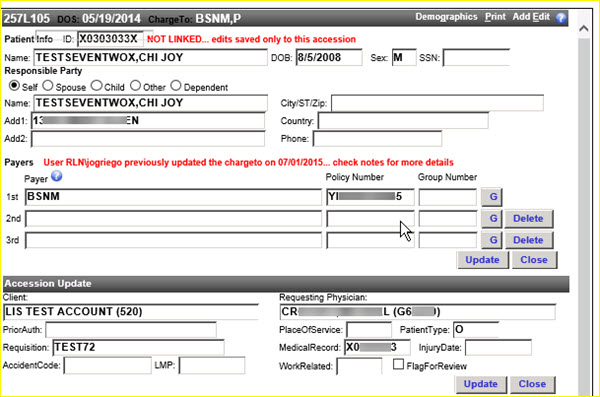 This section contains patient demographics and accession data.