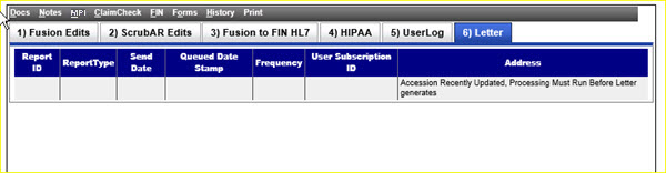 This tab displays a list, or history, of letters sent to this client for missing information, if any. Each record in the list includes a link to view the actual letter sent to the client.