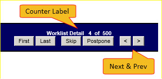 On the image above there are several navigation buttons and a label to indicate your location in the list of worklist records.