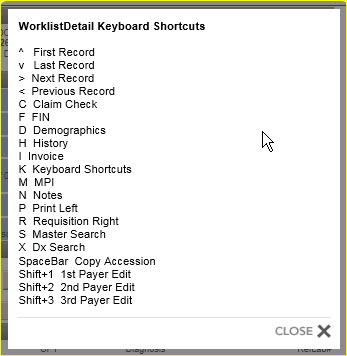 Click on the blue question mark icon to see a list of the WorklistDetail Keyboard Shortcuts.