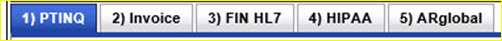 The FIN link provides access to several types of information; PTINQ, Invoice, FIN HL7, HIPAA and ARglobal. The ARglobal tab is available only to those users with permission to see that information.