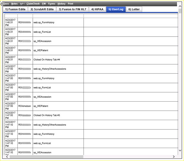 This tab displays every user action on this accession, if any.